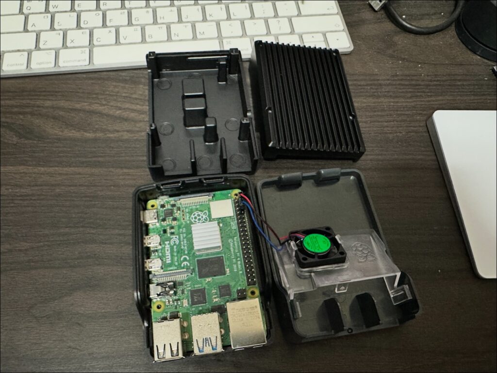 어제 저녁 야근하고 있는 와중에 아내로부터 메세지가 왔다. 책상 아래 NAS가 있고 그 위에 라즈베리파이를 올려두었는데 거기 사진을 찍어보내며 ‘여기서 소리가 난다’고 한다. 평소에도 팬 소리가 나긴 하지만 청소기를 돌리거나 고양이가 지나가면서 건드려 아마 위치가 약간 틀어지면서 소리가 더 크게 났을지도 모르겠다. 책상 옆면에 닿아 책상 하부가 거대한 울림통의 역할을 하게 됐을 수도 있다.